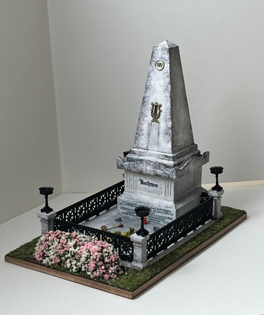 写真から3Dモデリングをして、3Dプリンターで、お墓の本体を制作し、表面にエージング塗装をしました。